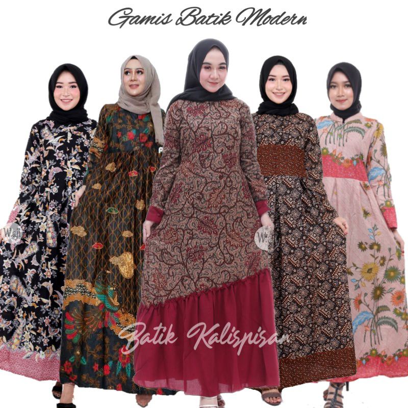 Kumpulan model gamis batik kombinasi modern simple elegan dan.